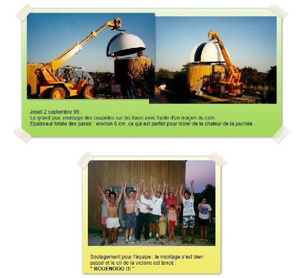Construction de l’observatoire en images Cet album retrace les différentes étapes de la construction de l’observatoire. Afin de réduire les coûts, les travaux ont été en très grande partie par les membres de l’association.