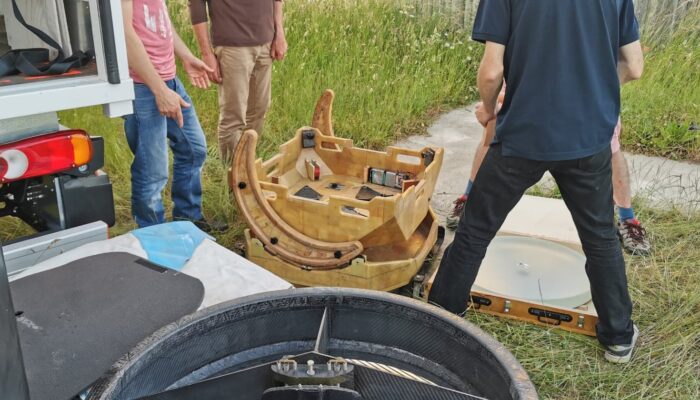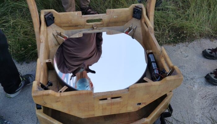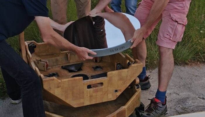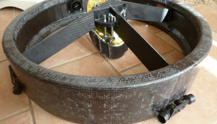 Entre temps, plusieurs membres sont allés profiter des télescopes T800 et T1000 de Stellarzac et ceci ne fut pas sans conséquence. Ils en sont revenus en parlant de couleur et de détails là où auparavant on décrivait un objet avec des commentaires succincts. Sans trop s’en rendre compte, nous étions contaminé par l’envie d’être encore plus ambitieux sur le diamètre. Par ailleurs, l’expérience des difficultés à lutter contre la turbulence du Cassegrain 400 de notre grande coupole nous amène à préférer un télescope type Dobson à l’air libre. L’idée de pouvoir se déplacer sous des cieux variés parait un bon objectif d’association pour faire des sorties entre membres. Après évaluation des ressources financières et humaines un Ø 560mm semble accessible. L’étalement du projet aidant les finances ont fini par permettre d’envisager un T600. On part donc pour un investissement de 7 900€ pour les deux miroirs et une réalisation interne en composite.