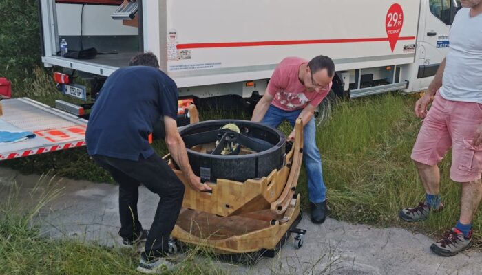 En juin 2011 nous recevons en don de Jean-Jacques Poupeau, un tube pour optique Newton avec sa monture à fourche. L’ensemble peut recevoir une optique de Ø400 à 450mm. Nous envisageons de l’installer dans notre “petite” coupole de 3,5m et commençons à provisionner pour l’achat des optiques. L’enthousiasme initial a fini par laisser place à la difficile réalité d’installer cette belle mécanique à l’étage d’une coupole n’ayant pour accès que le cimier et un escalier étroit.
