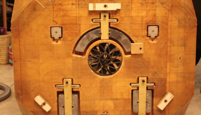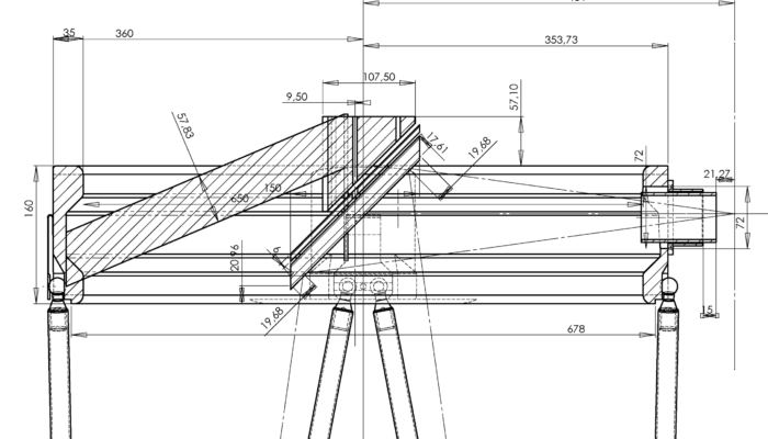 La possibilité de mettre sur informatique les idées au fur et à mesure qu’elle viennent, a permis de nombreux échanges. Chacun étant à jour des idées des autres rapidement. La conception se fait dans l’ordre du trajet optique, l’anneau secondaire, puis la caisse primaire, le rocker et la base. Les dessins sont fait en fonction des moyens disponibles. L’accès à de la découpe numérique explique les détails des pièces. Nous avons eut grande utilité de la scie à ruban pour découper en petits tronçons les éléments annulaires et de la défonceuse pour tous les congés.